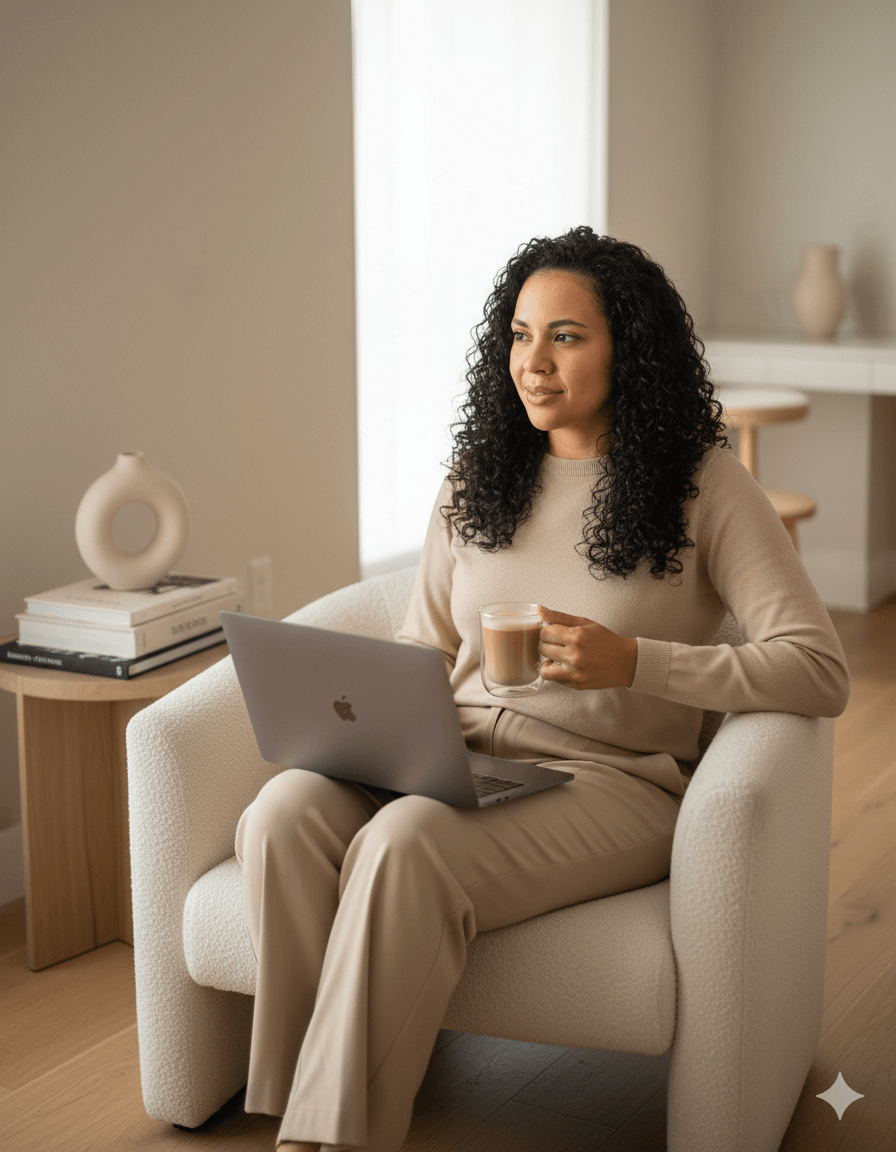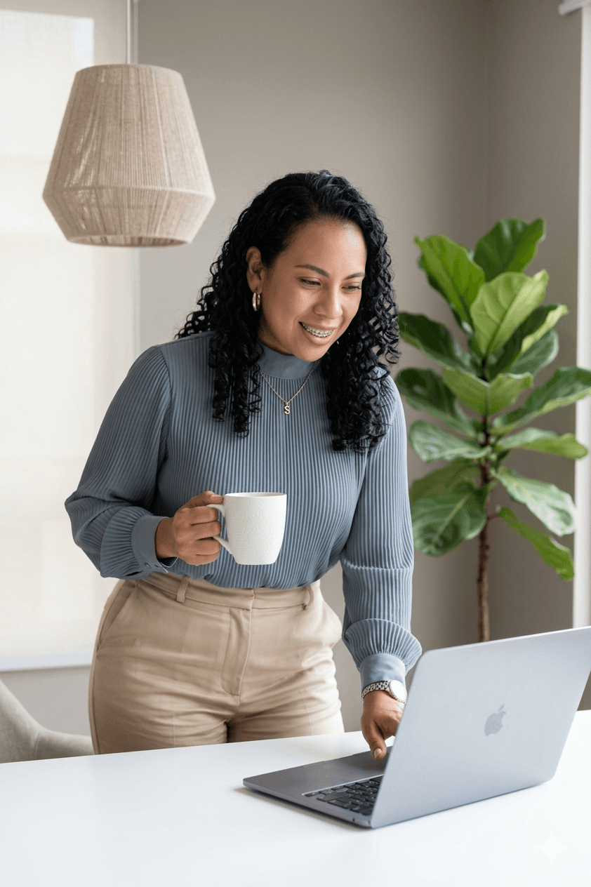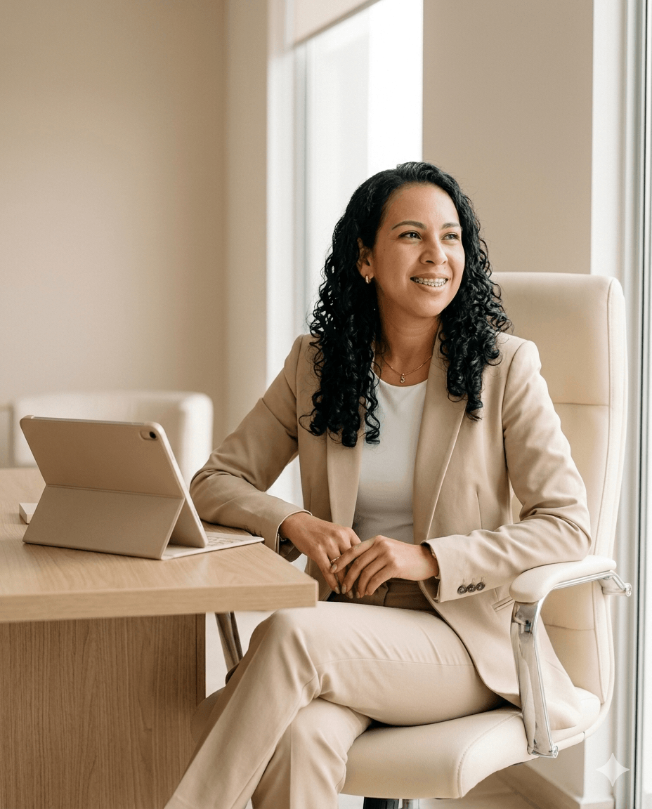 Acompaño a mujeres que saben que tienen algo valioso para dar — su historia, sus dones, lo que vivieron y superaron — pero todavía no saben cómo convertirlo en un negocio digital real que genere ingresos sin quitarles la paz ni alejarse de su propósito.